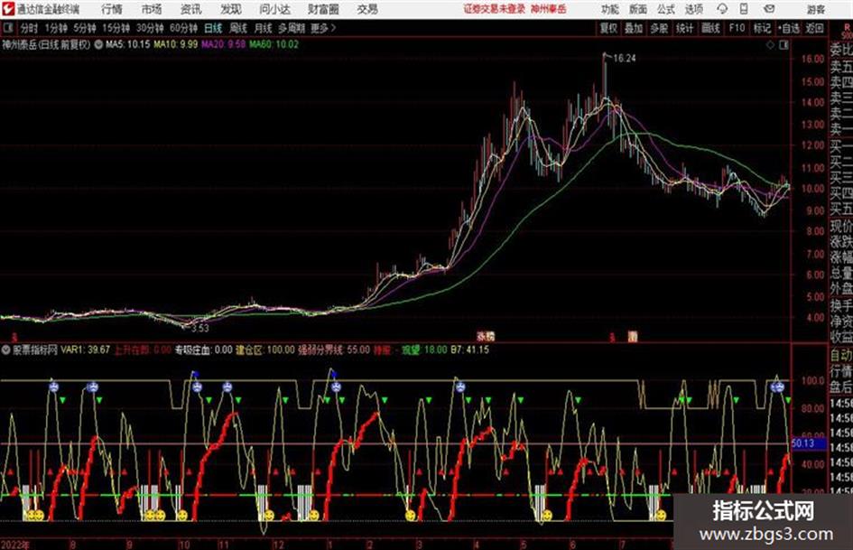 上升在即: IF(CROSS(VAR1,VAR2),50,0),STICK,COLOR0000CC,LINETHICK2;