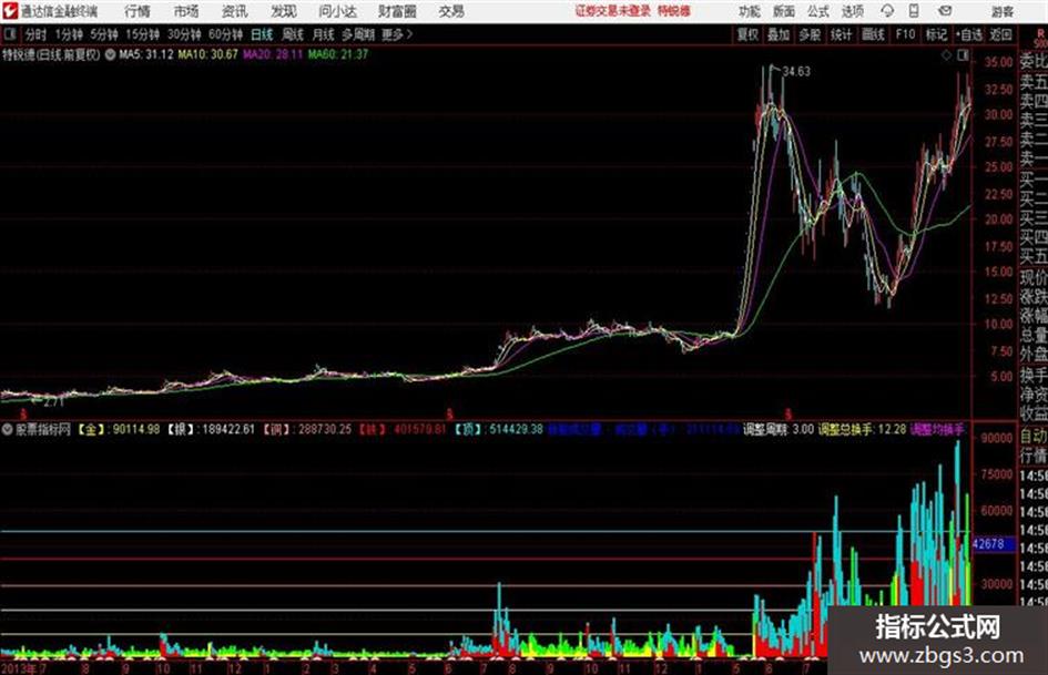MA3赋值:成交量(手)的20日简单移动平均,画白色