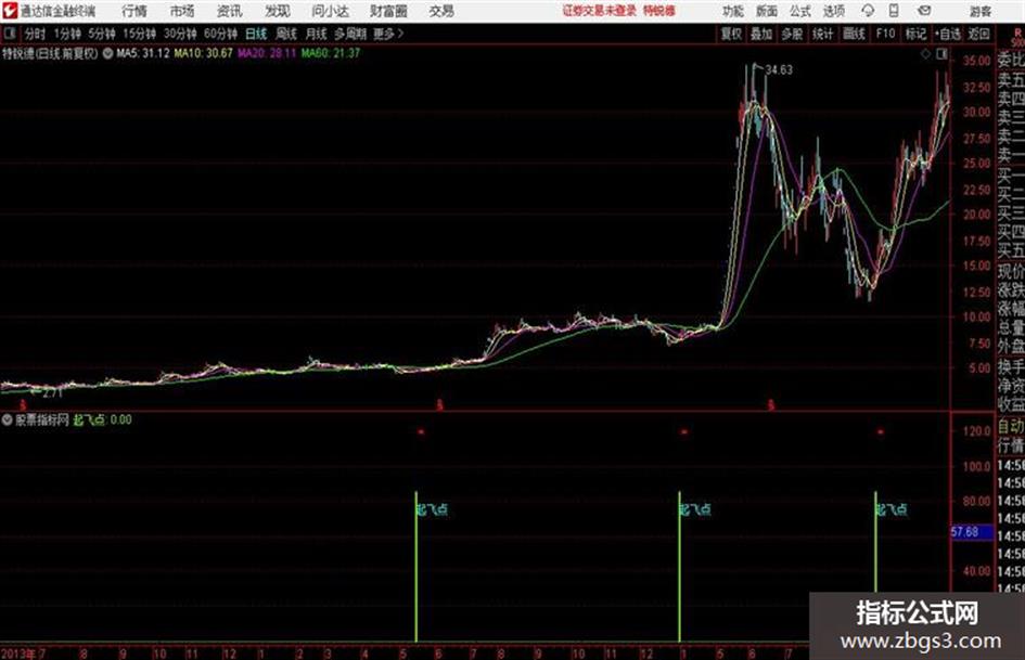 起飞点:IF(CROSS(VAR2P,VAR3P) AND VAR2P<20,85,0),stick,COLOR00FF7F,linethick2;