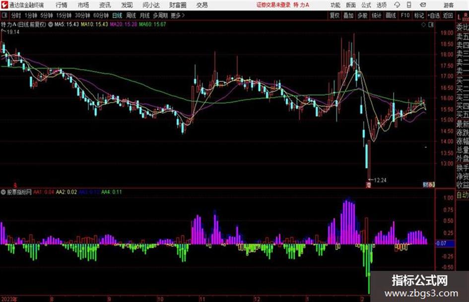 收:=SMA(ABS(C-MA(C,5)),3,1),LINETHICK3;
