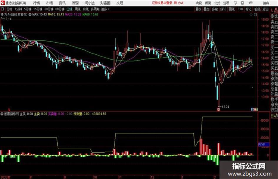 预测量:IF(DYNAINFO(7)=CLOSE AND DYNAINFO(10)=AMOUNT,MAX(VOL,DYNAINFO(17)*REF(MA(VOL,5),1)),0),COLORYELLOW;