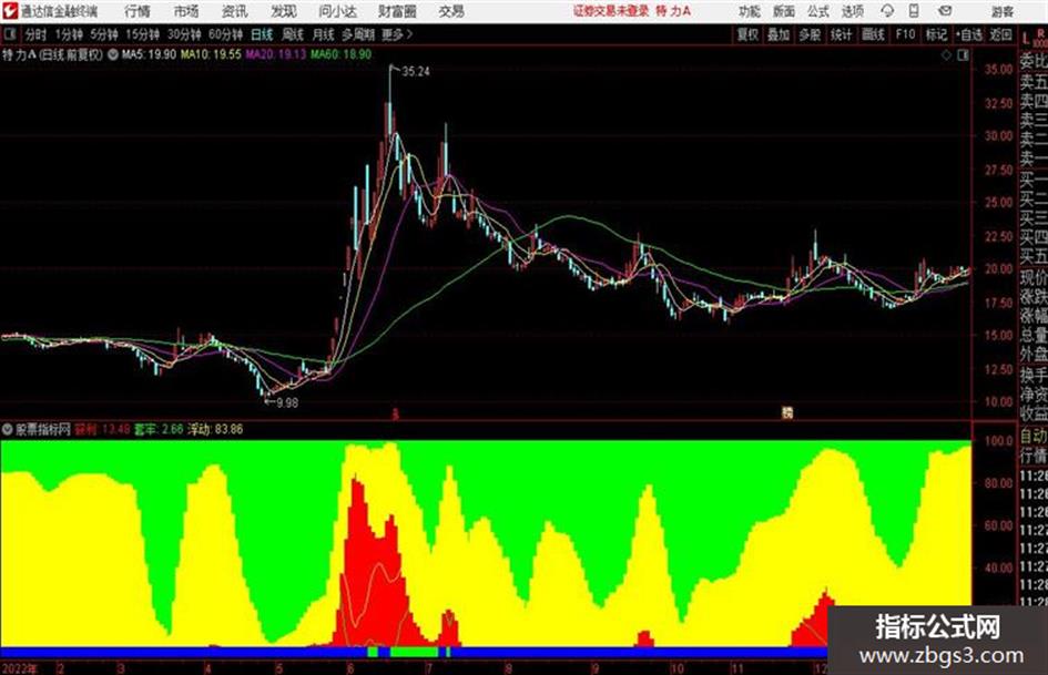 套牢: ( 100.000 - MA(A02,变量00)),colorgreen;