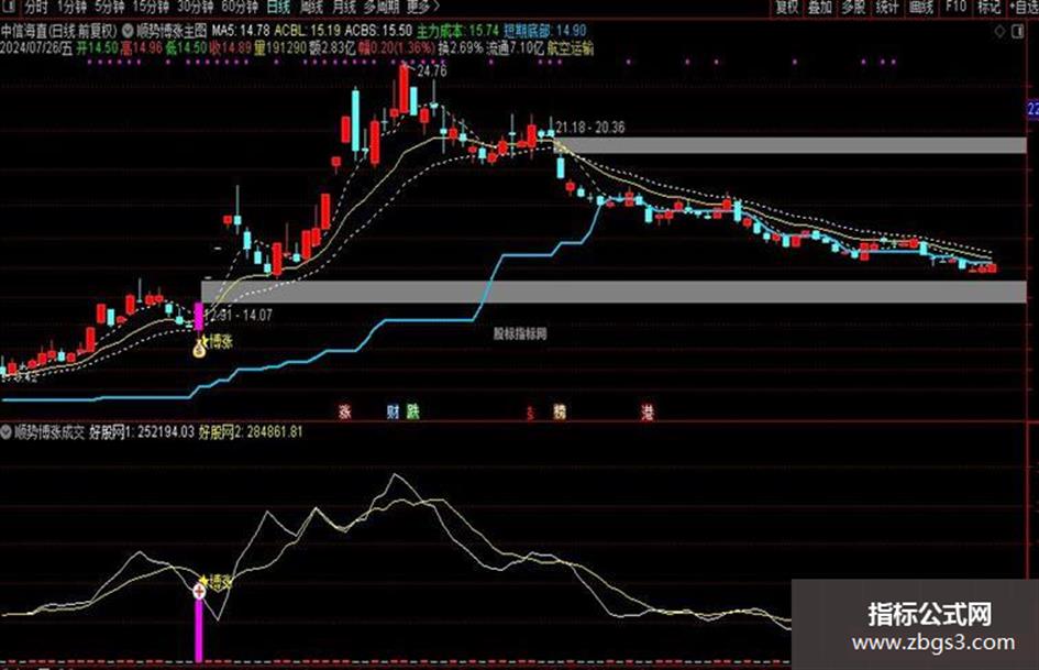 指标包含:博涨主图指标+博涨成交量+博涨指标;