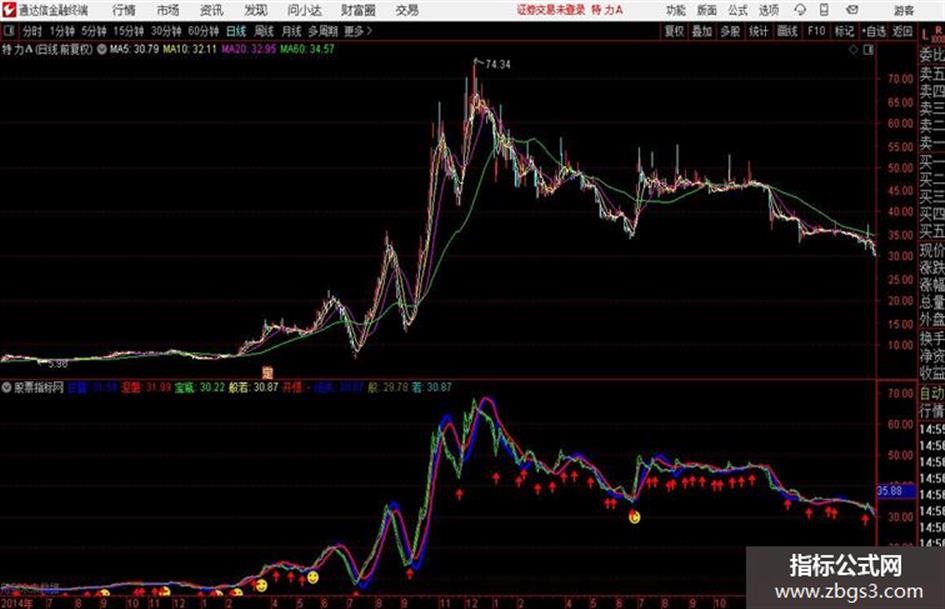 若:MEMA(CLOSE,3),COLORLIBLUE;{般值大于若值持股,反之空仓}