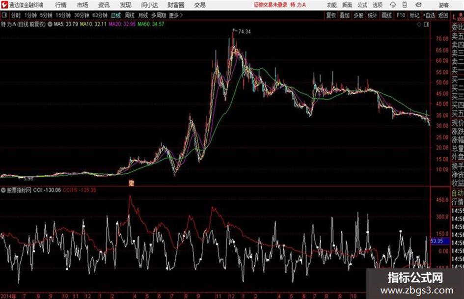 输出CCI:(TYP-TYP的N日简单移动平均)/(0.015*TYP的N日平均绝对偏差)