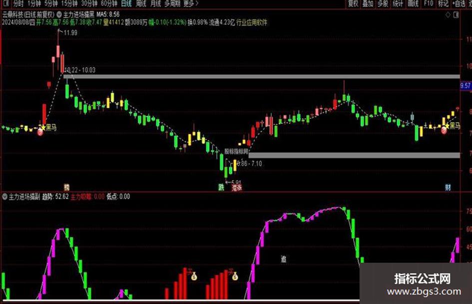 通达信【主力进场擒黑马】主副图指标 源码附图