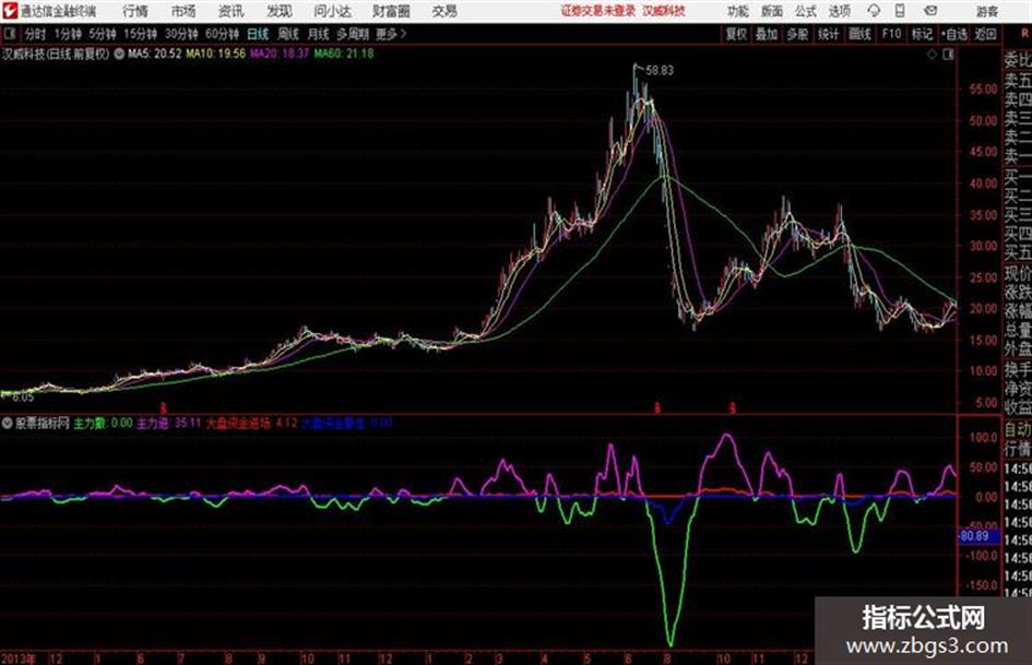 主力进: IF(V4>=0,V4,0),COLORFF00FF,LINETHICK2;