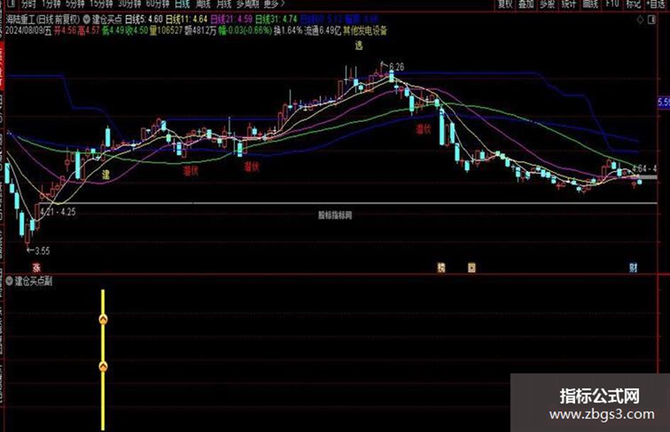 【建仓潜伏】主图副图,主图提供均线-潜伏点提示-建藏提示-逃顶提示,建都为建仓买入信号,每个信号出现使用的指参考不同;