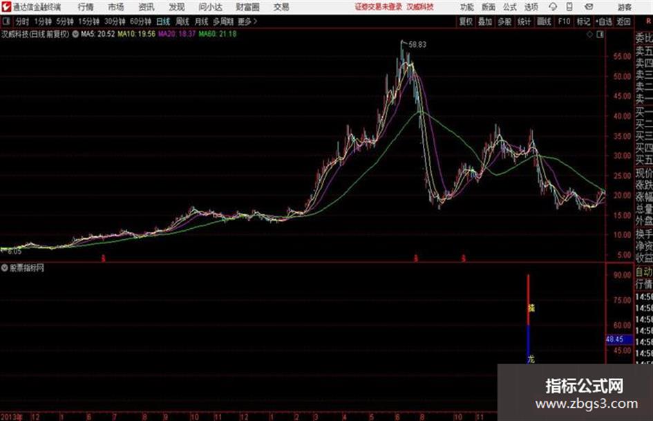 主力擒龙突破,捉波段主升浪,配合系统公式MA均价线系统,5天线上穿20天线,成功率能有95%以上。