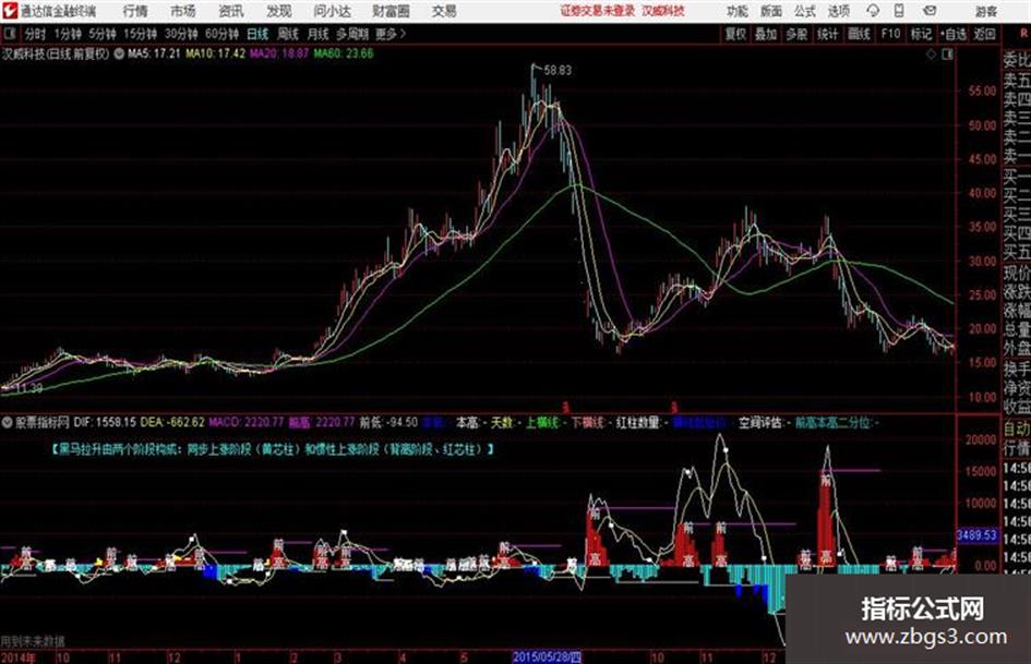 前高本高二分位:IF(MACD>0 AND 本高!=前高,DRAWLINE(WQG,(前高+本高)/2,REF(WQG,1),REF((前高+本高)/2,1),1)