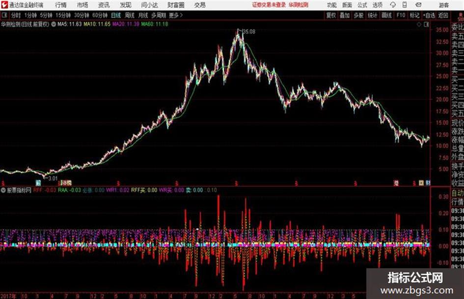 必涨:IF(CROSS(DIF,DEA)AND DIF<0 AND DEA<-0.02 AND WR10<4.5 AND RA>0,0.1,0),COLORLICYAN;