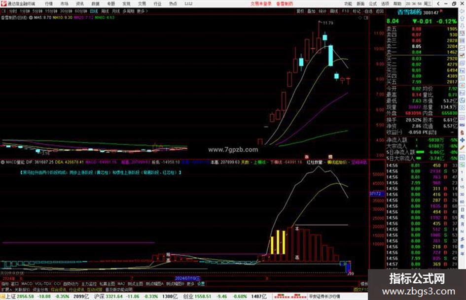 DRAWTEXT_FIX(1,0.05,0.04,0,'【黑马拉升由两个阶段构成:同步上涨阶段(黄芯柱)和惯性上涨阶段(背离阶段、红芯柱)】'),COLORFFFF00;