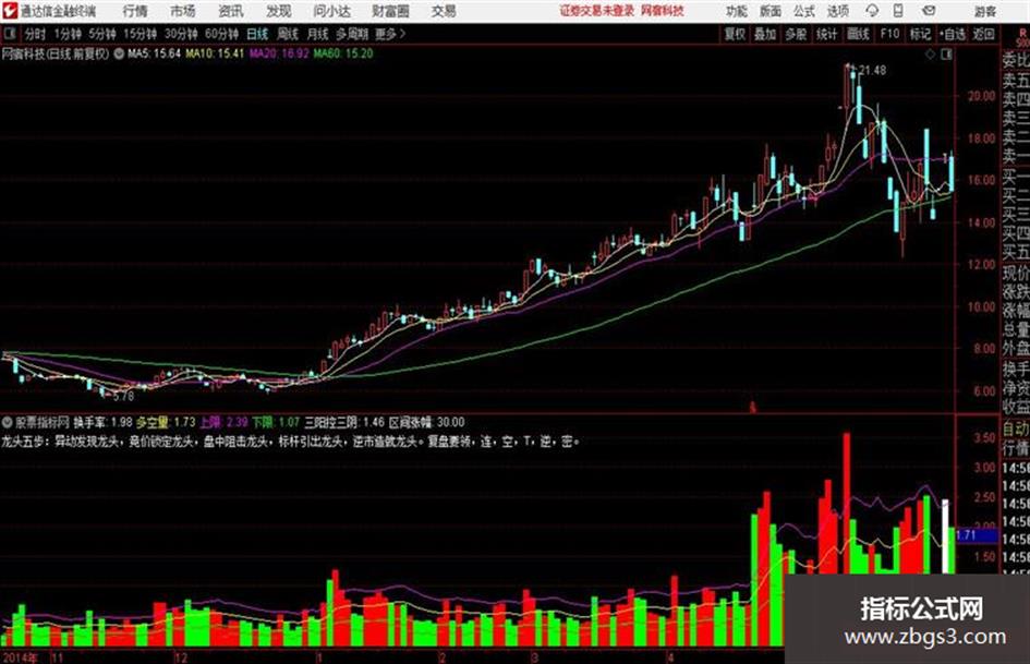 DRAWTEXT_FIX(1,0,0,0,'龙头五步:异动发现龙头,竞价锁定龙头,盘中阻击龙头,标杆引出龙头,逆市造就龙头。复盘要领,连,空,T,逆,密。'),COLORWHITE;