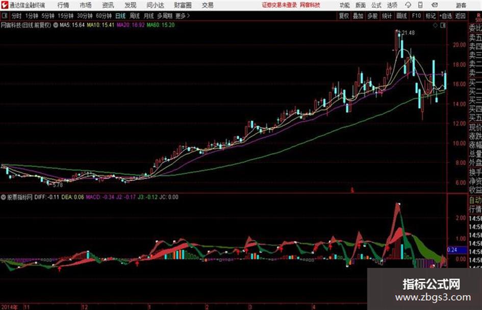 与其他MACD不同多一条短线游龙(组合称双龙戏水),特点非常敏感,短线走强就翻红走弱就翻绿,