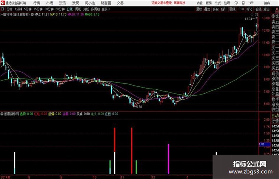 一共7个柱子,高低颜色各不同。可能会在同一天出现,无脑买入即可。
