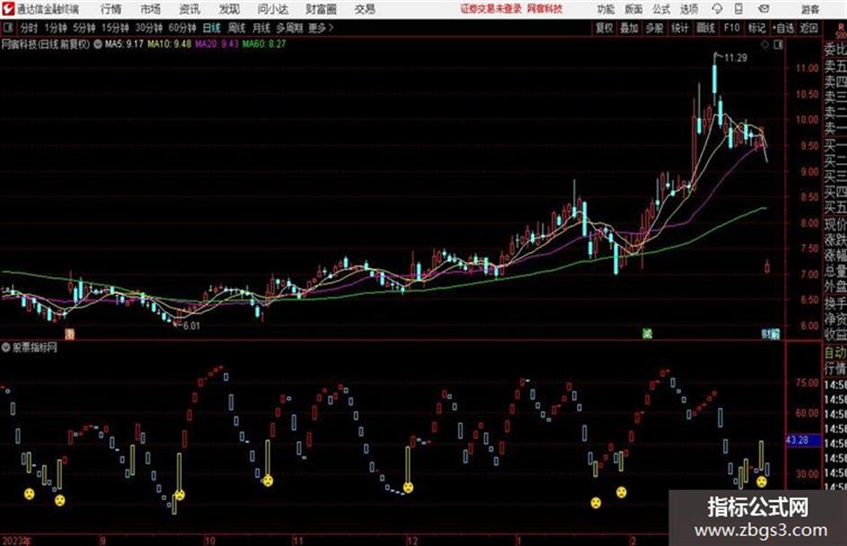 XXX:STICKLINE(VAR4>MA1 AND REF(VAR4,1)<30,VAR4+5,MA1-4,2,1),COLORYELLOW;