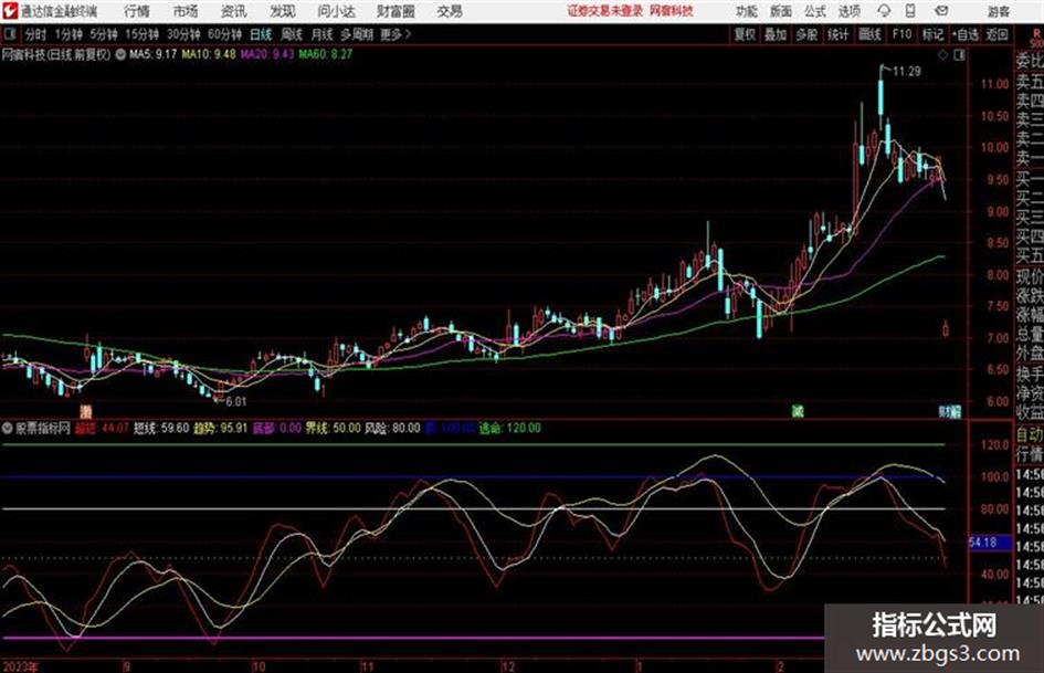 DRAWTEXT(CROSS(短线,超短) AND CROSS(趋势,超短) AND CROSS(趋势,短线),REF(超短,2)*1.2,'逃'),COLORBLUE;