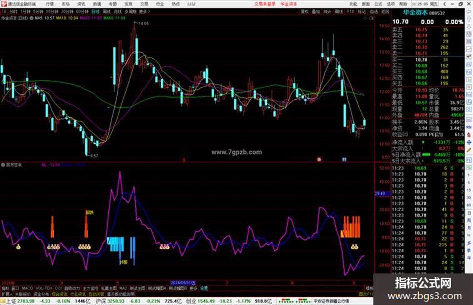 3、粉色线为短期趋势,蓝色线为长期股价趋势;短期趋势线(粉)低位上穿长期趋势线(蓝)为买入点;短期趋势线(粉)高位下穿长期趋势线(蓝)为止盈点。