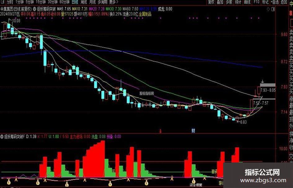 【捉妖筹码放量突破】启动主升浪指标公式95.8%:筹码放量突破捉妖