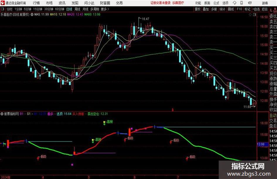 B1:IF(CROSS(买线,卖线),L-0.02,DRAWNULL),CROSSDOT,LINETHICK3,COLORMAGENTA;