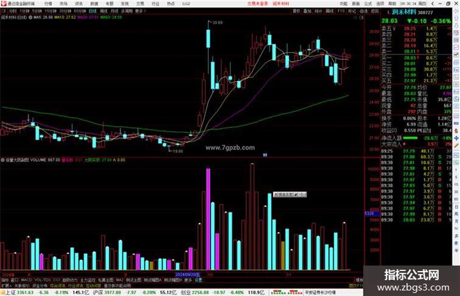 输出VOLUME:成交量(手),VOLSTICK