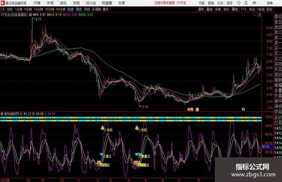 上面双排黄块块是短线的操盘指导,并且整合了五种抄底指标,感谢大魔王的创作者,实测五种抄底指标的成功率都在75%以上,规则是5%止损,5-10日持股,收盘价开仓,收盘价平仓,全图无未来,大家可以自己去测试.测试周期是2021.11.20-2020.11.20