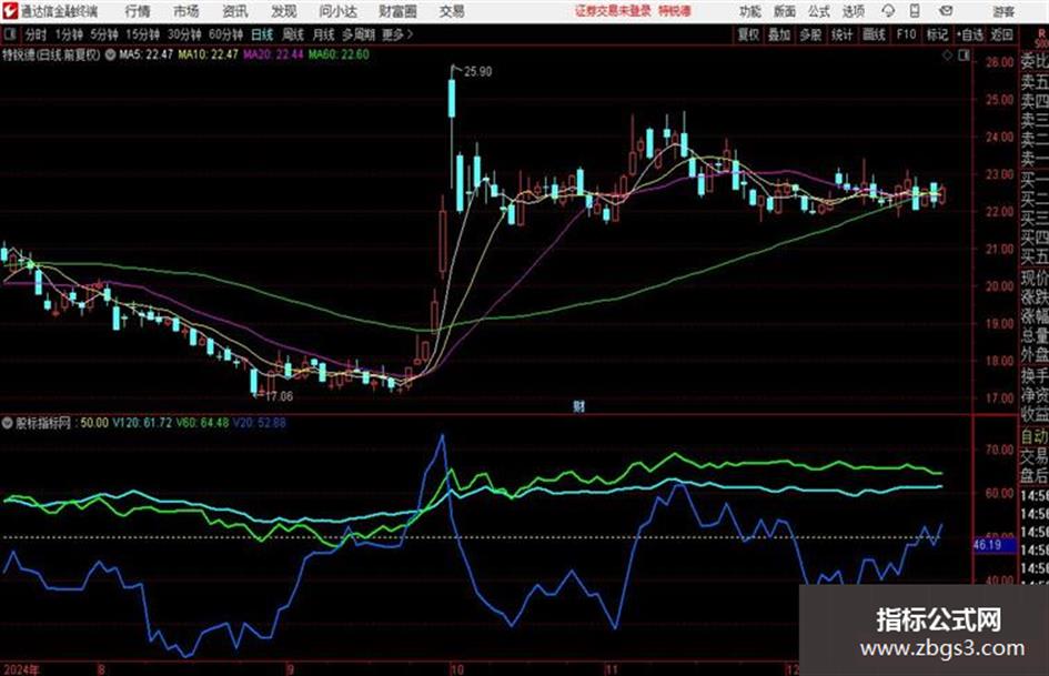 V60:SUM(IF(C>REF(C,1) OR C>=O,HSL,0),60)/SUM(HSL,60)*100,LINETHICK2,COLORGREEN;