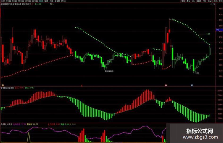 3,量化波段王主图指标和量化资金流向指标均出红色即双红;