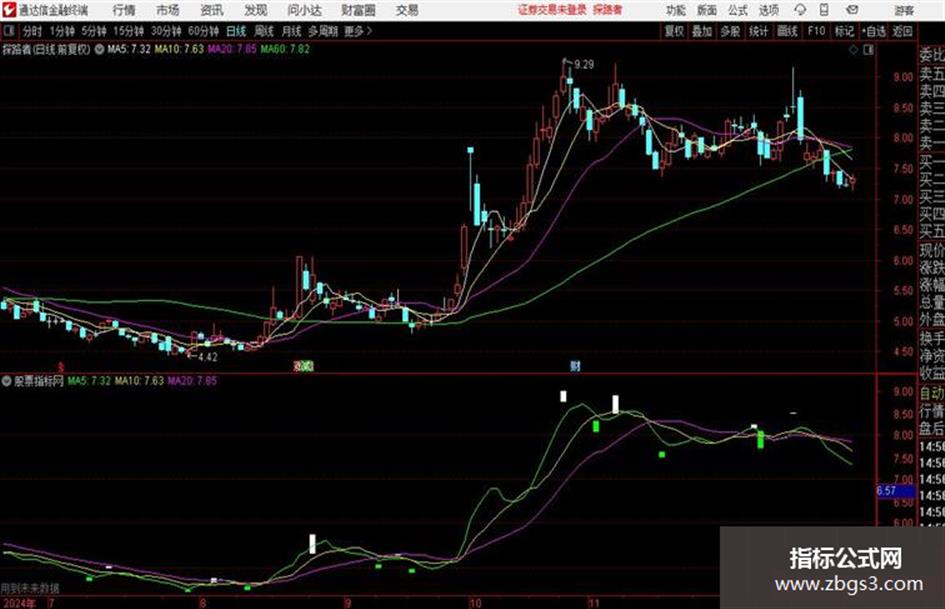 通达信顶底反转K线主图指标,绿柱是反转信号,指标使用到未来函数,信号谨慎参考!