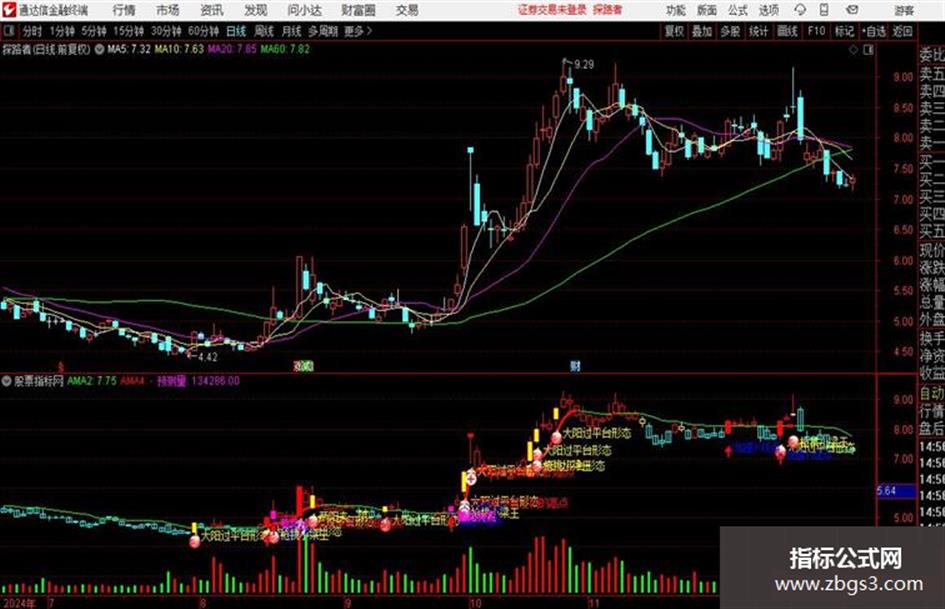 DRAWTEXT(大阳,L*0.97,'↖大阳过平台形态'),COLORYELLOW;