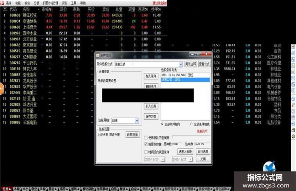 盘后选股建立股票池的源码:(这行别复制,下面的代码放到条件选股用的,放到条件选股下面,千万注意,不是盘中预警用的)