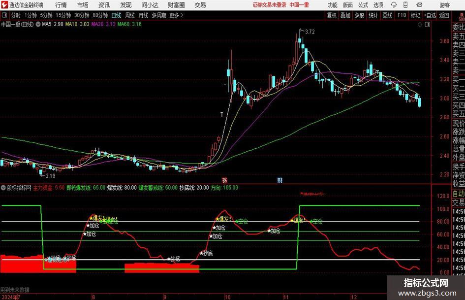 DRAWTEXT(CROSS(主力资金,爆发警戒线),主力资金,'★加仓') ,COLORWHITE;