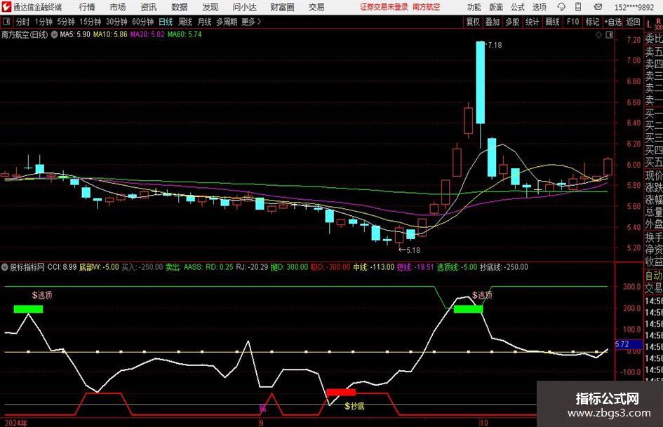 DRAWTEXT(中线>-3.5,逃顶线+220,'逃'),COLORGREEN;