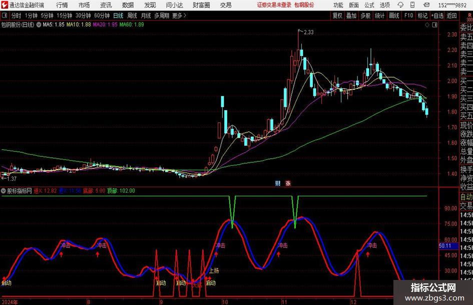 底部:IF(CROSS(进,退*0.98) AND 进<45,50,5),LINETHICK2,COLORRED;