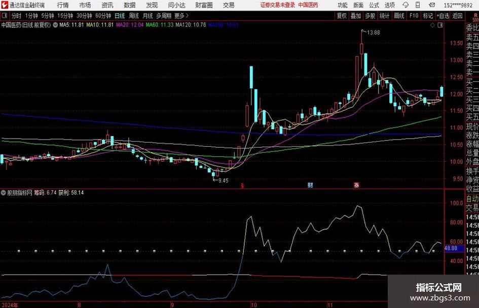 通达信筹码集中度、获利比例二合一副图指标 源码分享 附图