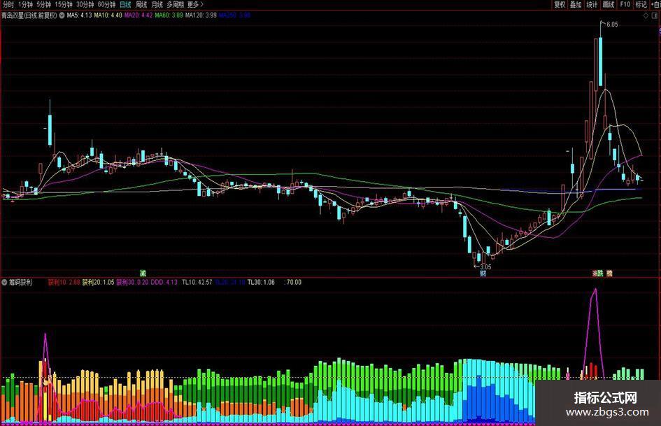 直观、动态观察筹码分布的绝好指标,不同颜色柱代表不同筹码获利程度