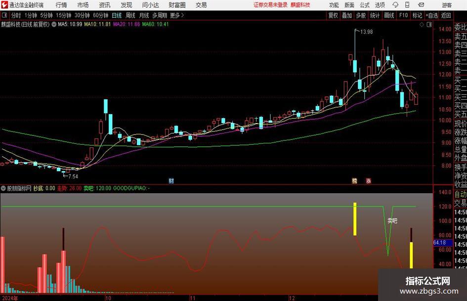 卖吧:IF(PEAKBARS(3,15,1)=1,51,120),COLORGREEN,LINETHICK1;