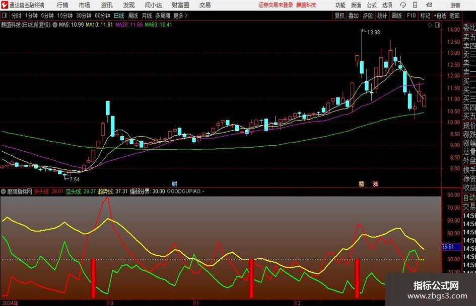VAR4AA:=IF(((CLOSE)/(REF(CLOSE,1))>1.03) AND((HIGH)/(CLOSE)<1.03) AND ((多头线-空头线)>10) AND 多头线>25 AND (趋势线>REF(趋势线,1)) AND (VAR3AA>0),91,0);