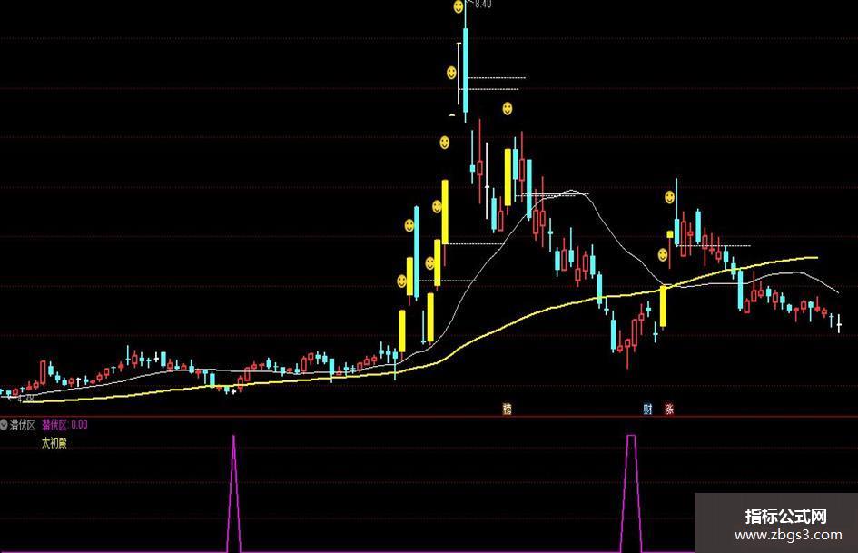 潜伏区:IF(XA_35<=8 AND XA_33>0.1 AND XA_9 AND XA_10 AND CLOSE>XA_11 AND XA_8,50,0),COLORMAGENTA,LINETHICK2;