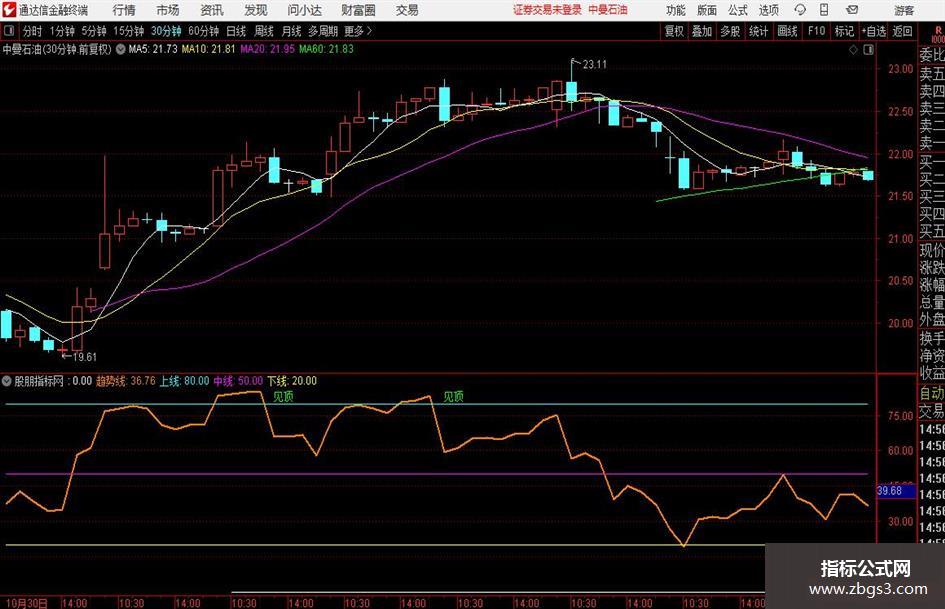 趋势线:SMA(MAX(CLOSE-X_1,0),8,1)/SMA(ABS(CLOSE-X_1),8,1)*100,COLOR0080FF,LINETHICK2;
