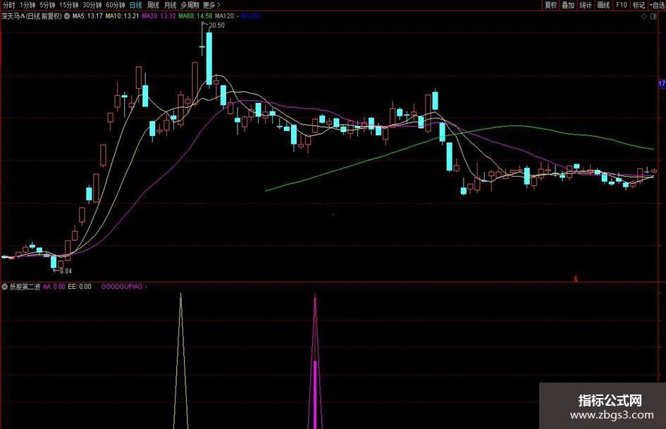 1、本指标使用于大妖股的第一波拉升后,经过一定幅度的下跌回调或一段时间的下跌回调后,主力再次启动的出击点。