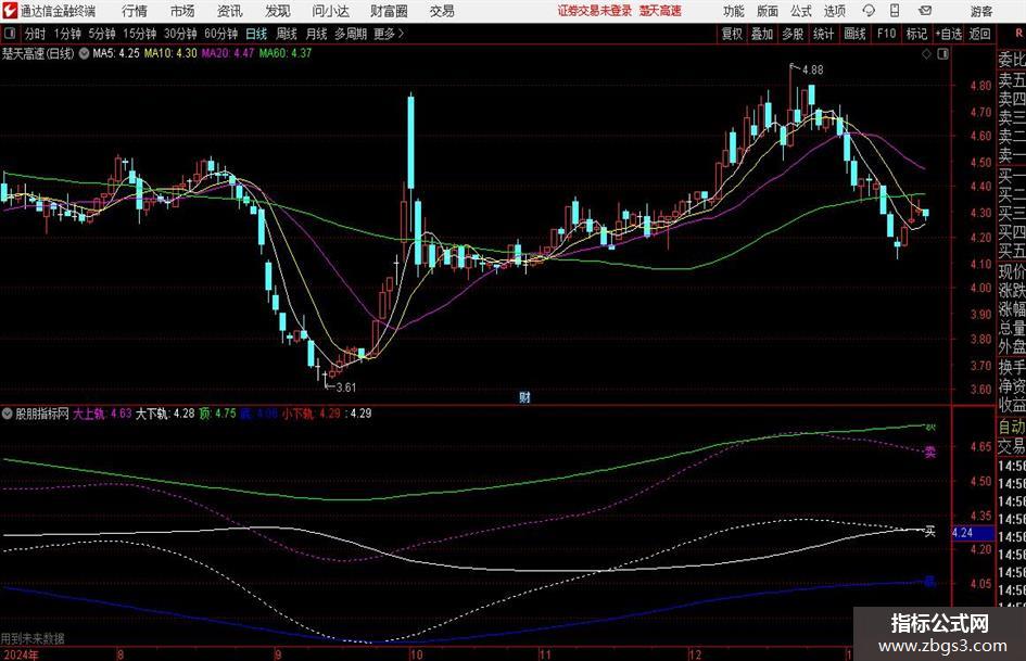 小上轨:=EMA(HH,90),COLORYELLOW,LINETHICK1;