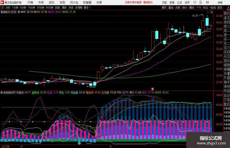 ADX: MA(ABS(MDI-PDI)/(MDI+PDI)*100,M),COLORMAGENTA;
