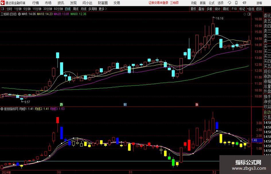 STICKLINE(收>=开 AND E,收,开,2,0) ,COLORYELLOW;