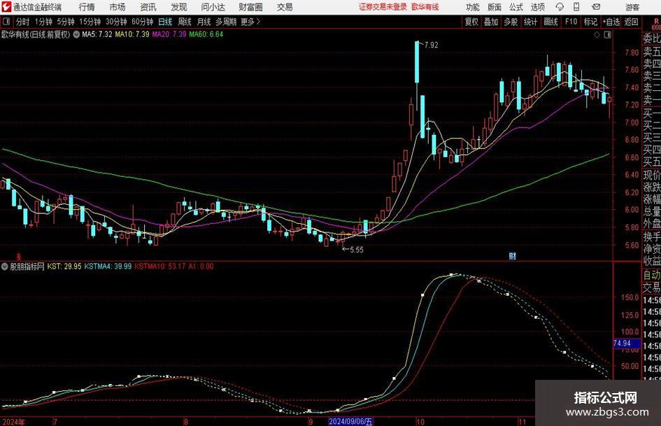 1.KST是一种综合动量公式,涵盖市场大势,适合段中长线分析,以捕捉市场转折点;