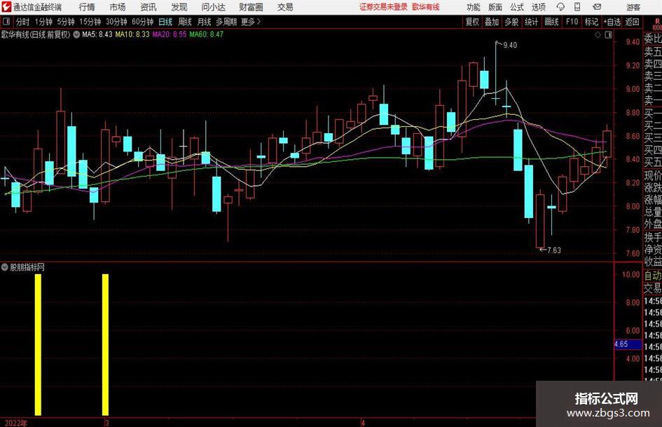 一阳定乾坤:=(C>VA7 AND O<VA8 AND VA1>1 AND CROSS(VA2,VA3) AND C/REF(C,1)>1.03);