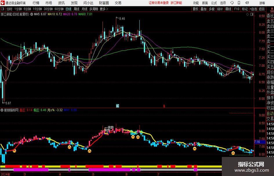 K线与波段操作线相结合的副图指标 通达信 源码 测试图