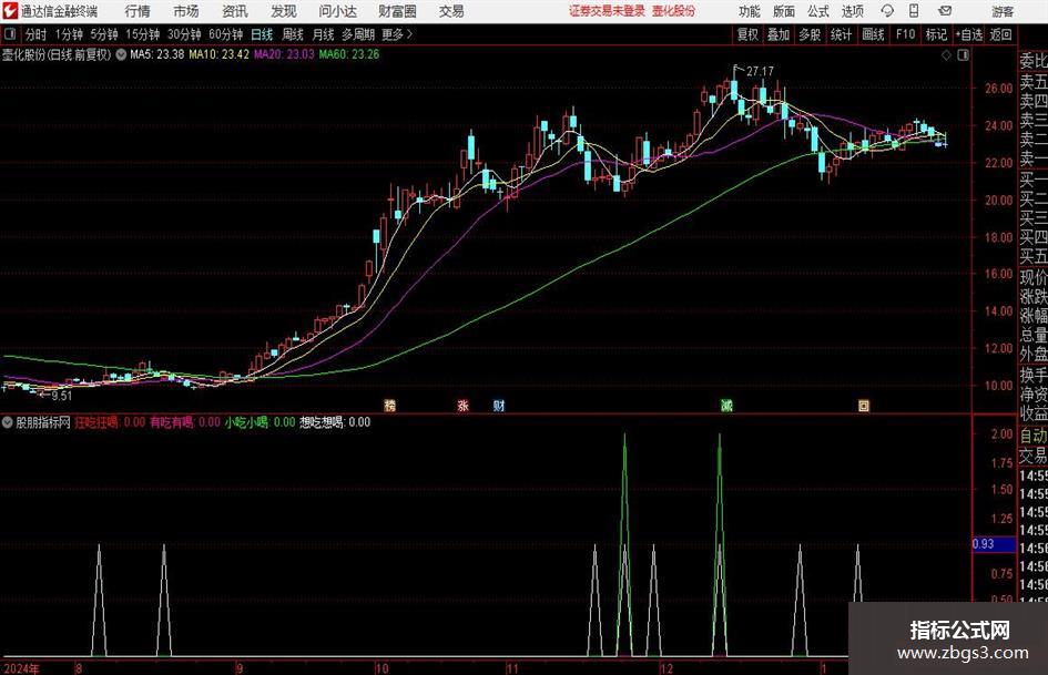 股价启动:=IF(CROSS(VAR21,VAR11),2.5,0),COLORRED,LINETHICK2;