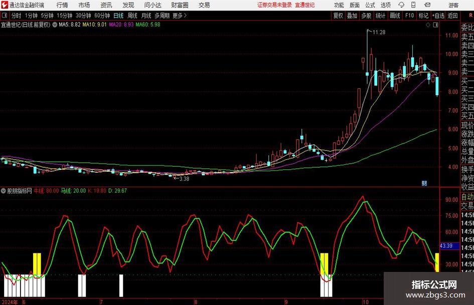 D: EMA(0.667*REF(K,1)+0.333*K,2),COLORGREEN,LINETHICK2;