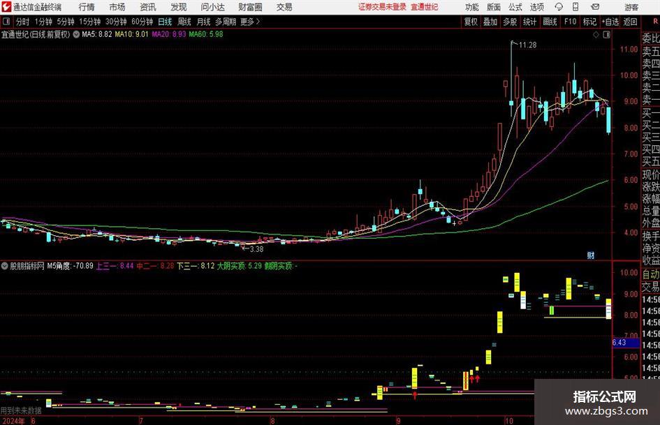 M5角度:ATAN((MA(CLOSE,5)/REF(MA(CLOSE,5),1)-1)*100)*180/3.1416,NODRAW;